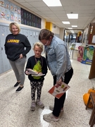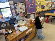 Today my 2nd graders were very excited to eat lunch with their families during our "Feature Hot Lunch Day". This morning they were able to browse the Book Fair during our scheduled Library time with Mrs. Schrick and look through a few of the new books. After lunch, they were invited to check out the Book Fair in the Library with their special guests. Some even stopped to take a picture at the fall bulletin board display as well as show their family around our classroom again. Following that, everyone was very thankful and excited to have an extra long recess supervised by Mr. Harman. Some family members even went out to join in on the fun for a bit. Miss Eben, our student teacher, was very grateful to have 8 books generously purchased by families to use in her future elementary classroom! What a fabulous day to be in 2nd grade!