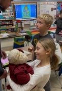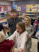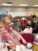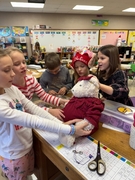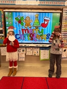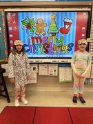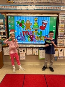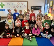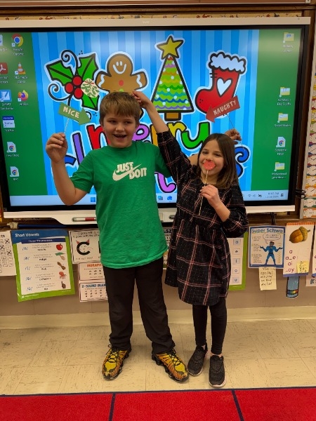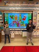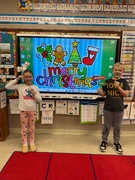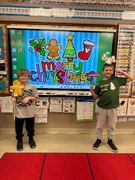 We know it's the most wonderful time of the year, because we had the most wonderful time at school this month! The best way to spread Christmas cheer is singing loud for all to hear. We helped create a winter wonderland in our hallway that looked like Buddy the elf was there....or was it Mr. Harman? We also showed our Christmas spirit by participating in the different school-wide holiday dress-up days. See if you can guess from our pictures what the theme was for each day. We took some fun Christmas photos with lights and silly props and made homemade ornaments to wish everyone that we love a holiday that is "merry and bright"! Today we were so excited to have Oaklyn bear join us all day and this afternoon, we were treated to a super sweet class party! Special THANKS go out to Kaela R., Kyla K., Leah L., Jessica R., and Travis R. for bringing so much JOY to our classroom this holiday season. There is no doubt in our minds that this awesome party will "go down in history" (just like Rudolph)!