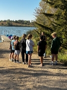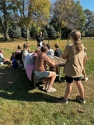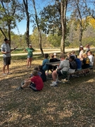 On October 2nd, the 5th graders traveled to Pahoja to participate in the annual Outdoor Classroom. There they experienced different outdoor activities and learning opportunities. Their first sesson was 'Water Quality', which was led by the West Lyon FFA students. They learned about the quality of water, what Ph levels are, and even got to dig in the mud for organisms. The second station was 'Water Olympics' led by Jill Postma. They learned about cohesion, adhesion, and surface tension. They got to do two water related activities at this session...one dropping water on a penny, and the other trying to float a paperclip. The third station was fishing!! This needs no explanation and the kids LOVED it! Braxtyn T. was the only one to catch a fish in our class!! The fourth station we visited was 'Critter Crate' with Tate Anderson. He showed us his collection of animal hides. Charlie O. was the master at guessing what they were. The fifth station was run by DGR Engineering. Jericho Poppinga taught the kids about GPS and let them use some of their equipment to find a hidden chip. When they found it they got a piece of candy!