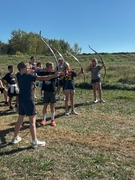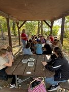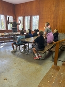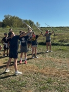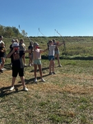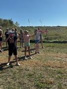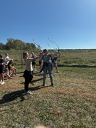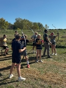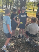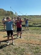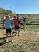 After a lunch, our group went to the 'Flu Flu Archery' station. The kids got to shoot arrows at a moving target. I believe Weston M. was the only one that got it! The seventh station was 'Soils and Prairies'. The kids participated in a jeopardy game to learn all their is on the topic. The eighth station was 'Bees' presented by Dayton Buntjer. She taught the kids all about bees! The last station was 'Dog training'. Did the kids train dogs? Nope. They trained each other!! They had so much fun giving each other commands and pretending to be dogs.