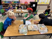 This visit she challenged the students to imagine what our world would be like without agriculture by-products. To help them better understand she brought their attention to several by-products found right here in our classroom. Following her lesson, the students worked in groups to make a list of as many of those examples they could spot. It was fun to see everyone working together to spell the words, think of ideas, and encourage each other. We are very thankful that Miss Jensen came to teach us about by-products and remind us how important agriculture is in our everyday living and learning.*please click on the top photo to see more pictures
